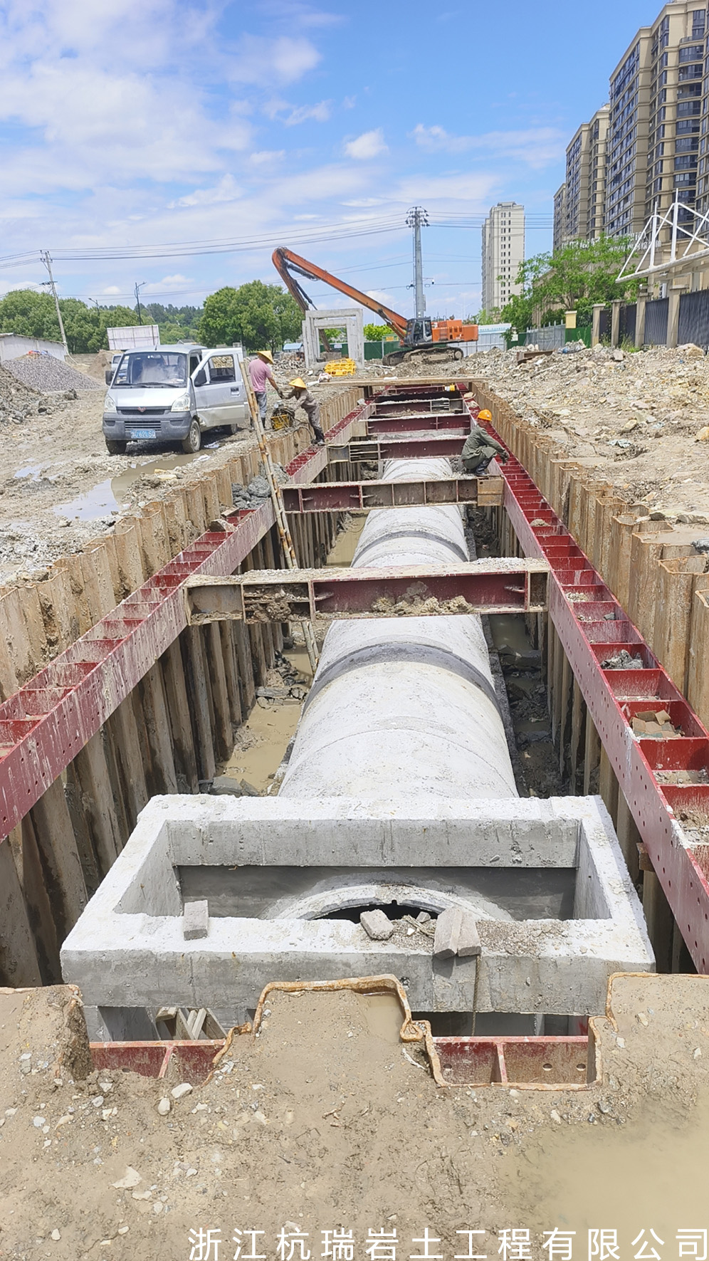 浙江杭瑞巖土工程有限公司, 成立于2016年,本公司是一家從事巖土設(shè)計(jì)、巖土監(jiān)測(cè)的深基坑圍護(hù)的公司。公司主要承接打拔PC工法樁、拉森鋼板樁,打拔管樁,鋼便橋,swm工法樁,搭設(shè)以及圓管樁、拉森樁、貝雷架、型鋼、鐵板及路基板的租賃。公司有12米、14米、16米、18米等型號(hào)長(zhǎng)度圓管樁30000余噸,有9米、12米、15米、18米等拉森鋼板樁10000余噸,450、470打樁機(jī)多臺(tái)。曾參與溫州地鐵S1線(xiàn)基坑圍護(hù)、甌江口大橋基坑圍護(hù)、中石化勝利油建甬臺(tái)溫復(fù)線(xiàn)石油管道等,國(guó)家大型基礎(chǔ)工程,華東地區(qū)市政工程提供新做法,完成管網(wǎng)改造,基坑維護(hù)等工作。